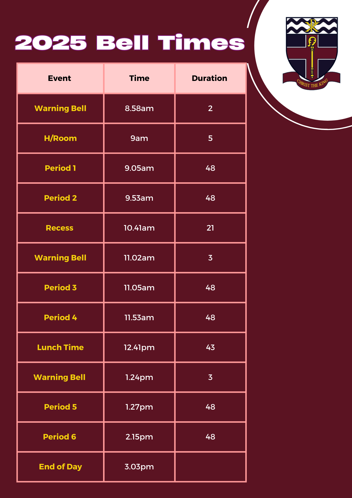 - Bell Times